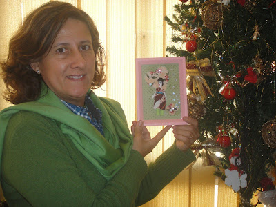 Como sou de Lisboa, mas a minha filha estava a estudar no Rio, a amiga Estela entregou o presente à Diana que só chegou a casa no dia 24, por isso só agora posso mostrar a todos este lindíssimo quadro.