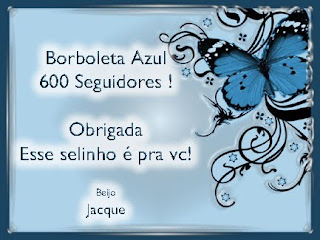 Este lindissimo selinho foi oferecido pela amiga Jacque do blog "Borboleta Azul" para comemorar os seus 600 seguidores.